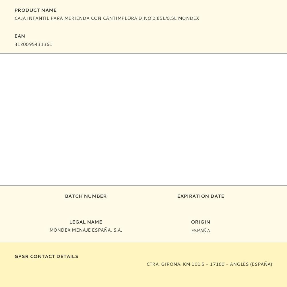 CAJA INFANTIL PARA MERIENDA CON CANTIMPLORA DINO 0,85 L / 0,5 L