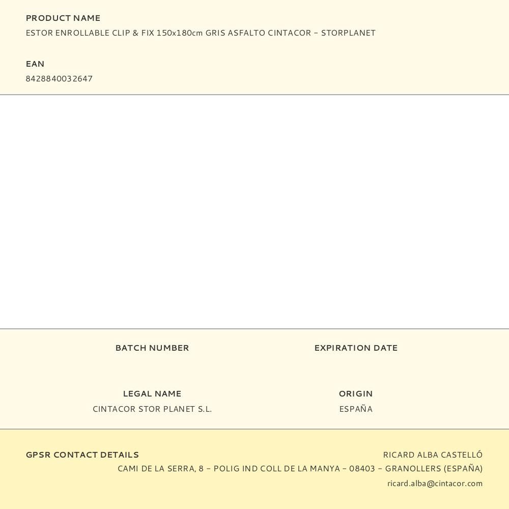 ESTOR ENROLLABLE CLIP & FIX GRIS ASFALTO 150 x 180 cm