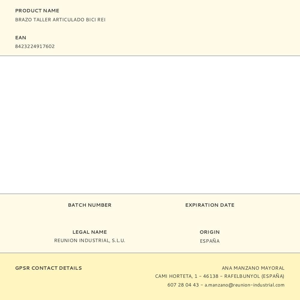 BRAZO TALLER ARTICULADO BICI REI 34x30x25 CM PESO MAX 15KG