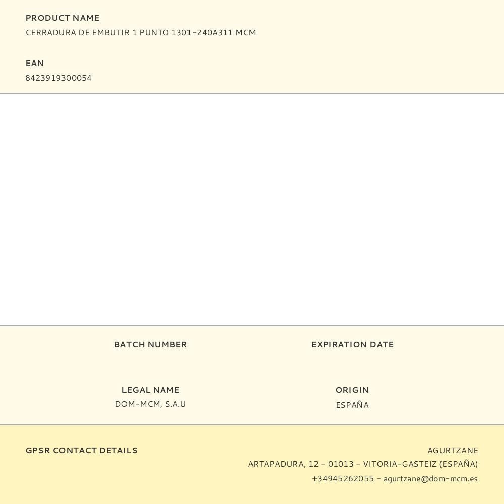 CERRADURA DE EMBUTIR 1 PUNTO 1301-240A311 MCM