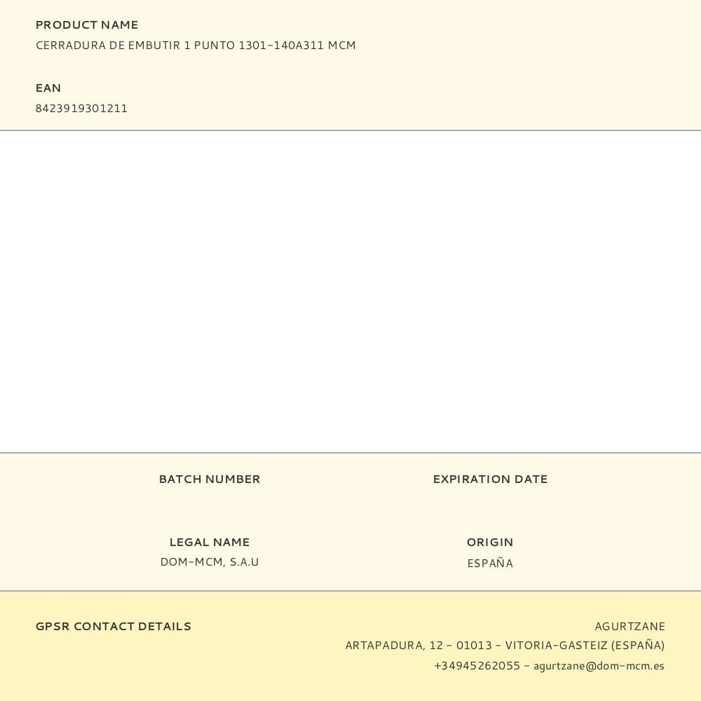 CERRADURA DE EMBUTIR 1 PUNTO 1301-140A311 MCM