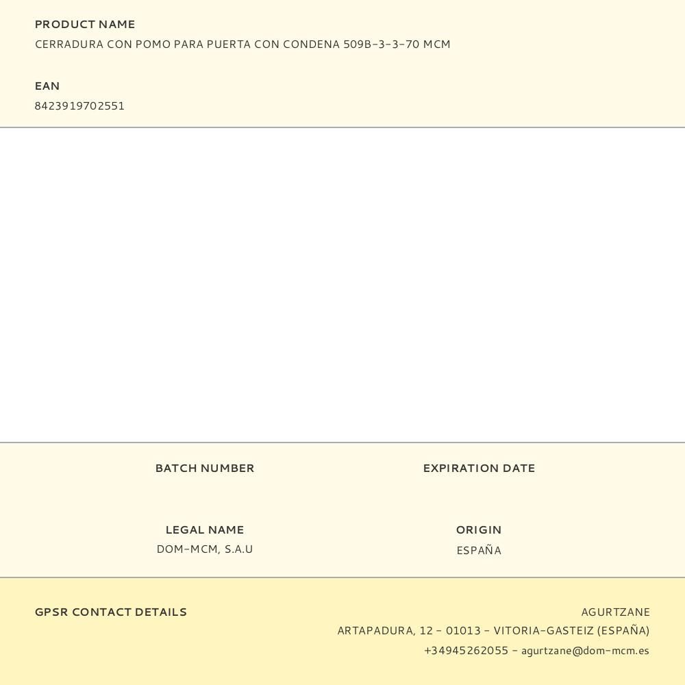 CERRADURA CON POMO PARA PUERTA CON CONDENA 509B-3-3-70 MCM
