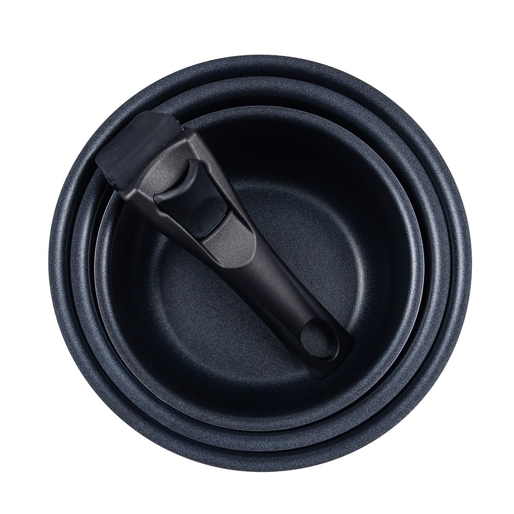 SET 3 CAZOS (Ø16+Ø18+Ø20cm) CLICK & COOK BERGNER. CONSTA DE 3 CAZOS DE LA COLECCIÓN CLICK & COOK EN COLOR NEGRO DE Ø16, Ø18 Y Ø20cm + UN MANGO MULTIUSOS. LOS CAZOS ESTÁN FABRICADOS EN ALUMINIO PRENSADO, UN MATERIAL LIGERO Y RESISTENTE. MANGO DESMONTABLE QUE SE PUEDE INTERCAMBIAR ENTRE TODAS LAS PIEZAS CON UN SOLO CLIC Y SE QUITA DE LA MISMA MANERA. MANGO EXTRAÍBLE Y ALMACENAMIENTO APILABLE. APTOS PARA TODO TIPO DE PLACAS, INCLUIDA LA DE INDUCCIÓN, Y SON APTOS PARA EL LAVAVAJILLAS, EL HORNO (SIN EL MANGO) Y EL FRIGORÍFICO.