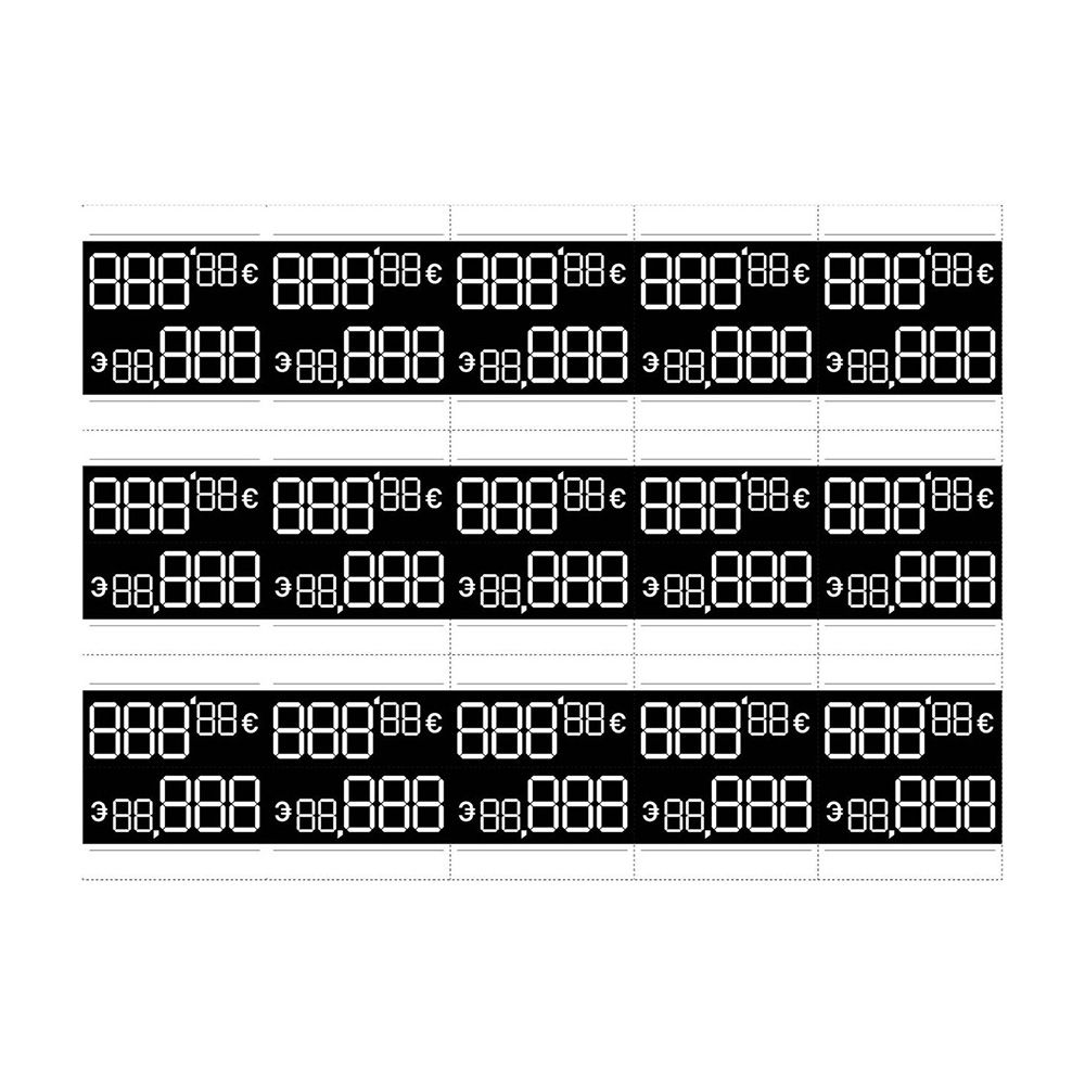 LÁMINA DE ETIQUETAS DE PRECIOS PERSONALIZABLES PARA INDICAR PRECIO PVP EN ESTABLECIMIENTO, CON UN ESPACIO PARA ESCRIBIR EL NOMBRE O REFERENCIA DEL ARTÍCULO, 30 UNIDADES POR LÁMINA, TAMAÑO DE LA ETIQUETA 54 x 33 mm, IDEAL PARA PONER EN PORTA PRECIOS TRANSPARENTE