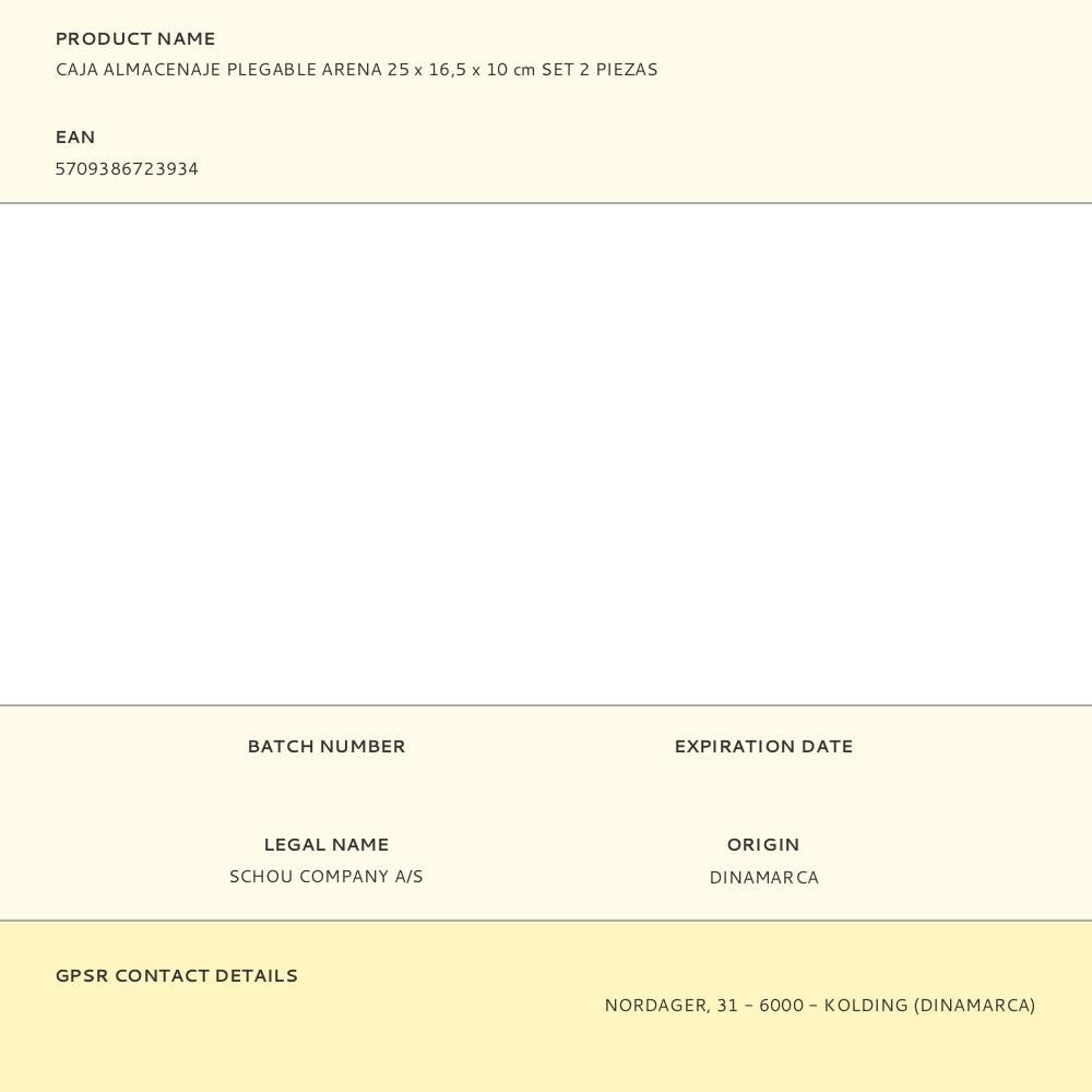 CAJA ALMACENAJE PLEGABLE 25x16.5x10cm SET 2 PIEZAS. COLOR ARENA NATURAL. Max 10kg 3,3 L