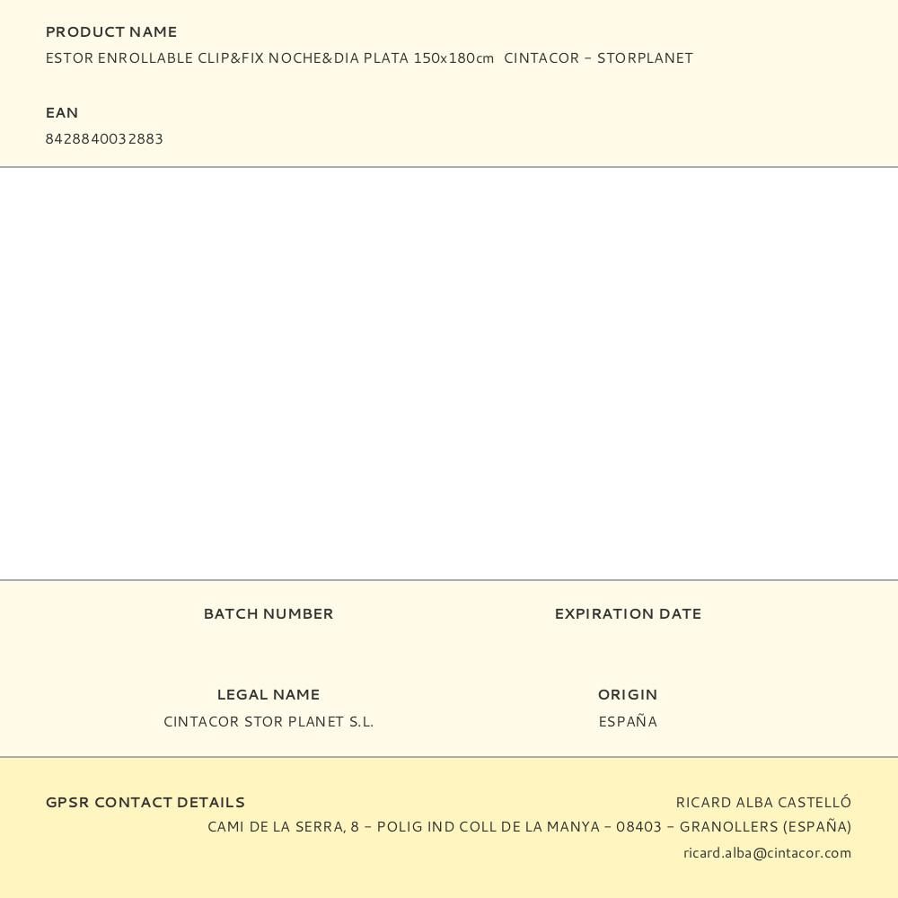 ESTOR ENROLLABLE CLIP & FIX, NOCHE & DIA, PLATA 150 x 180 cm