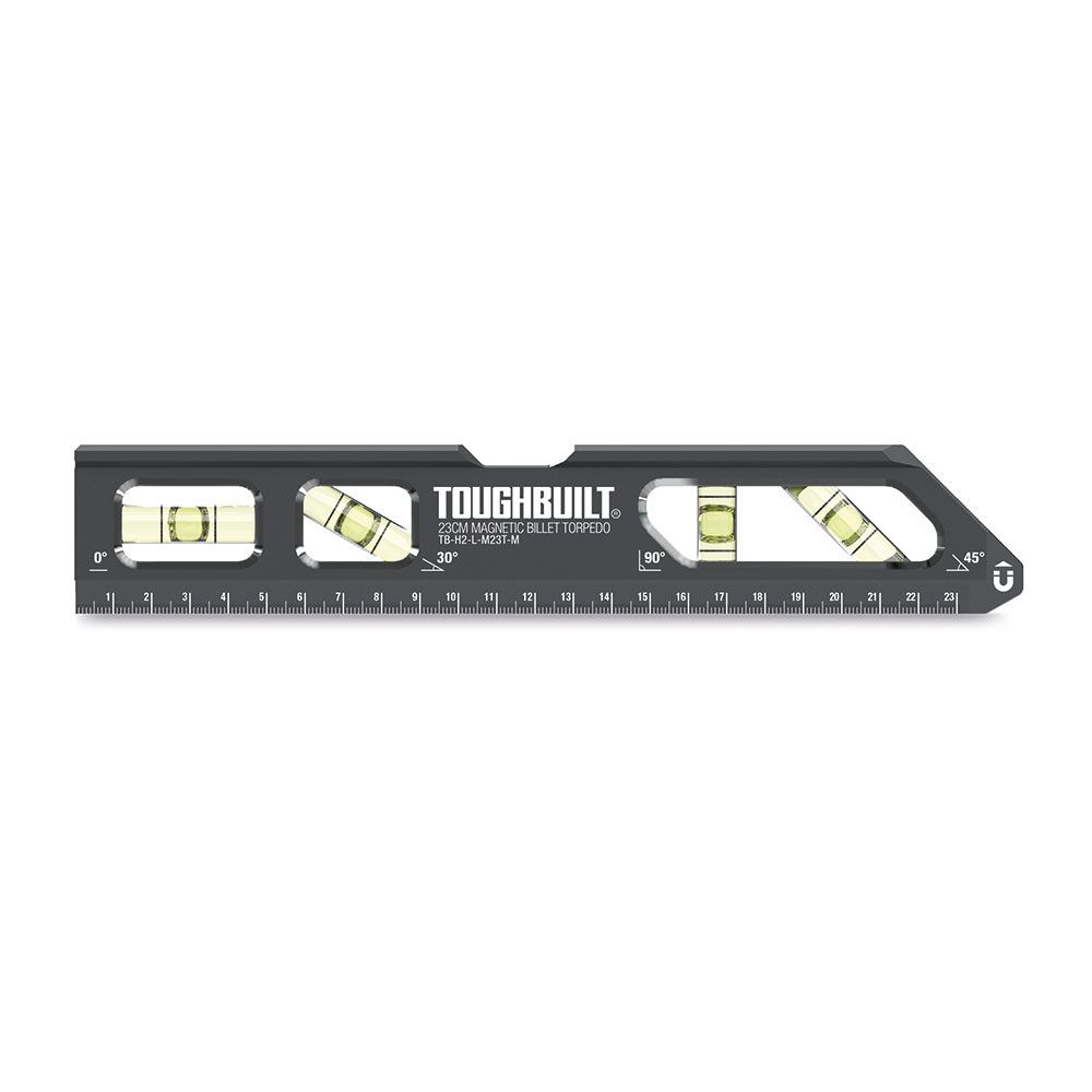 NIVEL TORPEDO MAGNÉTICO DE 23 cm, 4 BURBUJAS DE PRECISIÓN 0°, 30°, 45° Y 90° ESTRUCTURA DE ALUMINIO PARA DURABILIDAD SUPERIOR, POTENTES IMANES DE NEODIMIO PROPORCIONAN UNA FUERZA SUPERIOR DE SUJECIÓN. RANURA SUPERIOR PARA PERFECTA ALINEACIÓN EN CONDUCTOS O TUBERÍAS