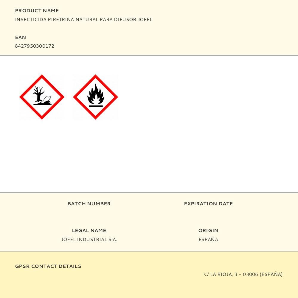 INSECTICIDA PIRETRINA NATURAL PARA DIFUSOR JOFEL