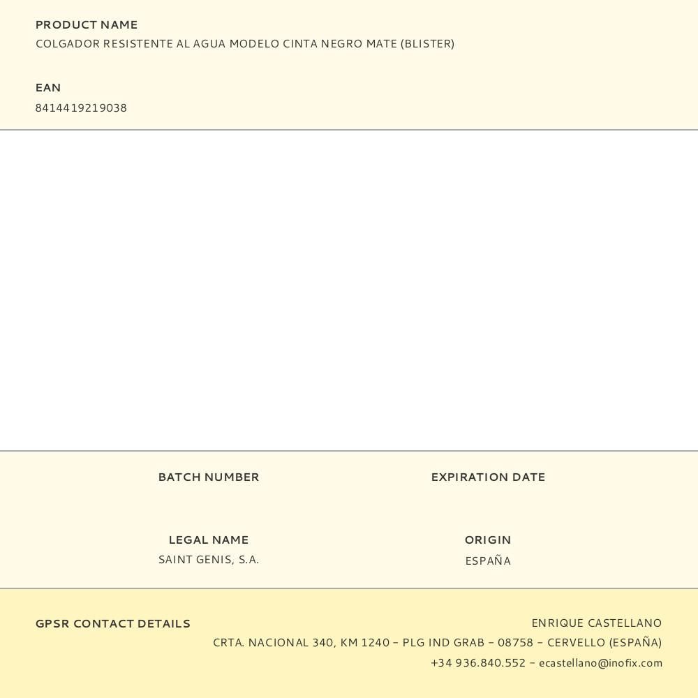 COLGADOR RESISTENTE AL AGUA MODELO CINTA NEGRO MATE (BLISTER)
