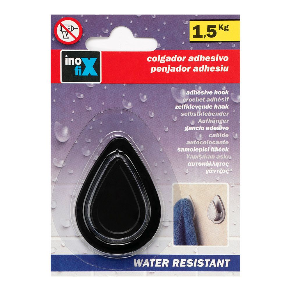 COLGADOR RESISTENTE AL AGUA "GOTA" NEGRO MATE 2193-3 INOFIX. ADHESIVO RESISTENTE A LA HUMEDAD Y ALTAS TEMPERATURAS. PESO MAX. SOPORTADO 1,5kg