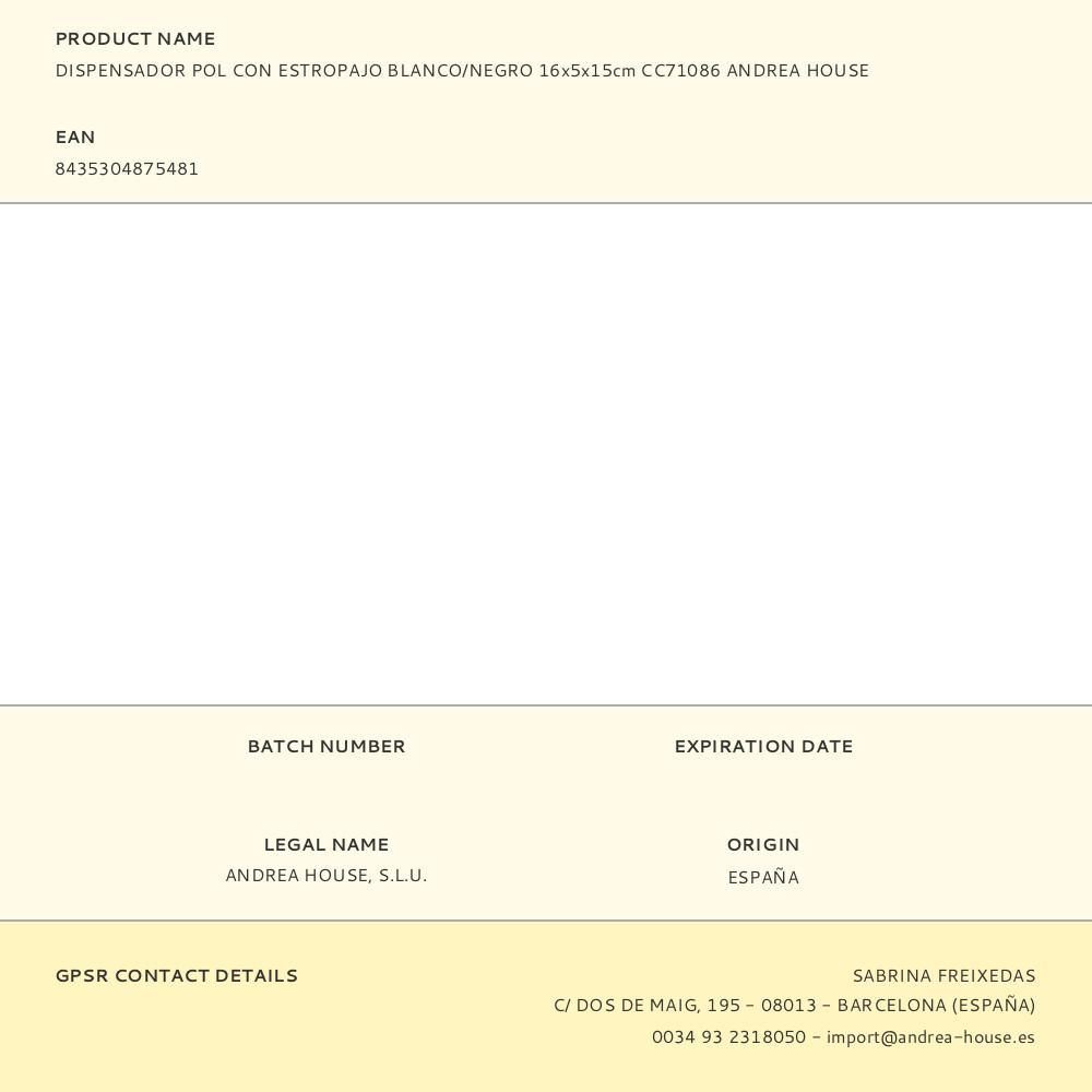 DISPENSADOR POL CON ESTROPAJO BLANCO/NEGRO 16 x 5 x 15 cm