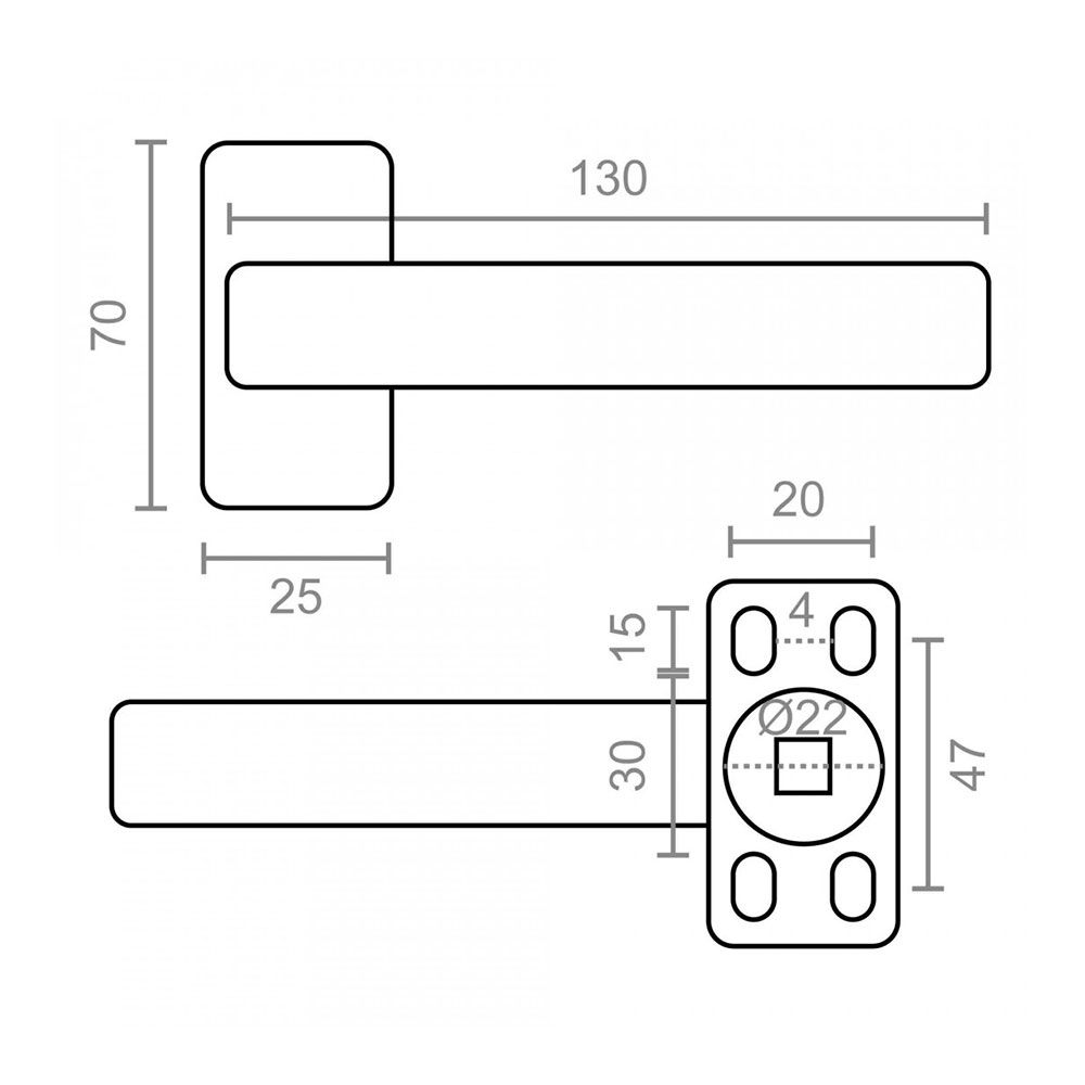 JUEGO MANILLA 6800. MEDIDA DE LA PLACA 70 x 25 mm. CON ORIFICIOS PARA 4 TORNILLOS. MEDIDA DE LA MANILLA 130 mm. MATERIAL ALUMINIO. ACABADO NEGRO (TORNILLOS INCLUIDOS)