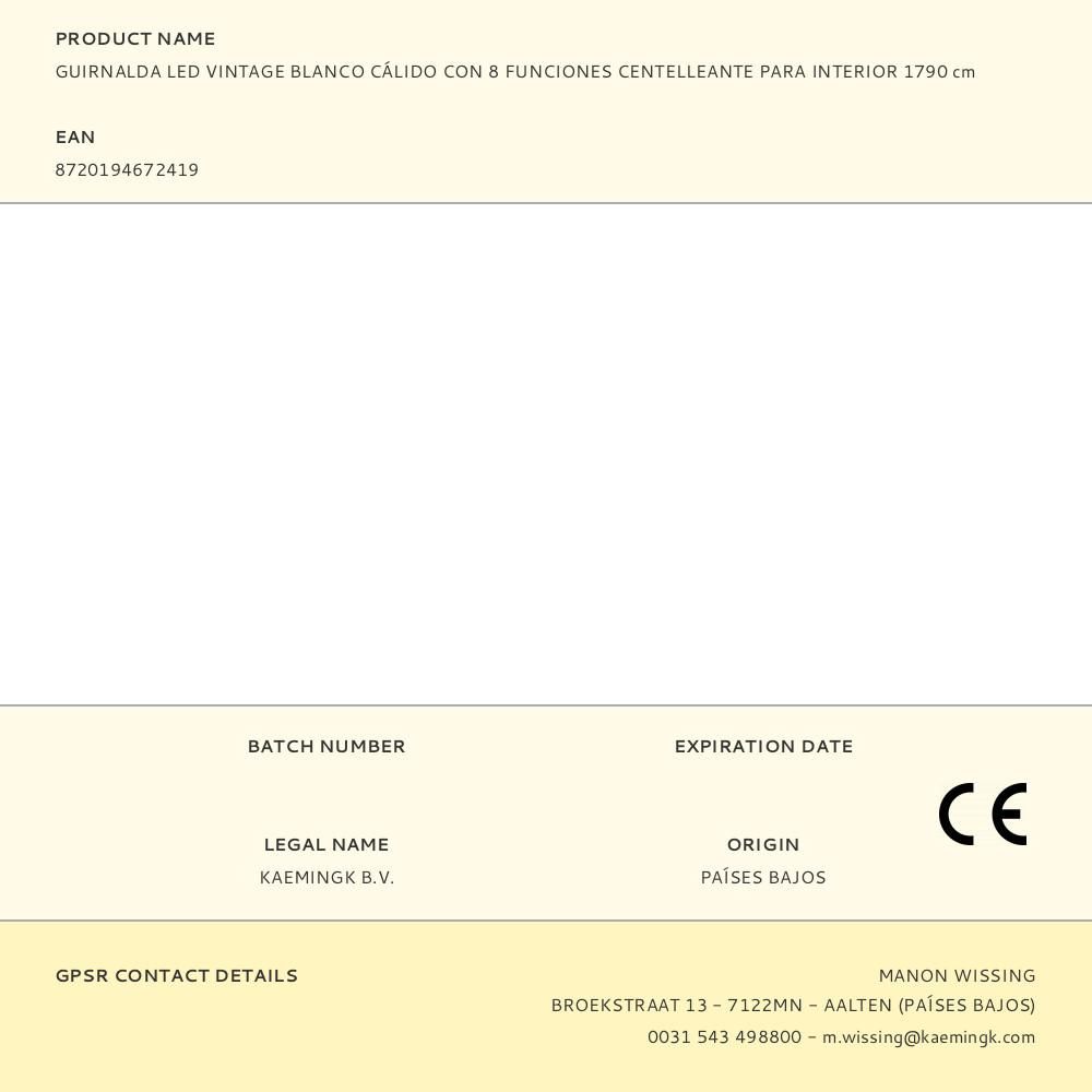 GUIRNALDA LED VINTAGE BLANCO CÁLIDO CON 8 FUNCIONES CENTELLEANTE PARA INTERIOR 1790 cm
