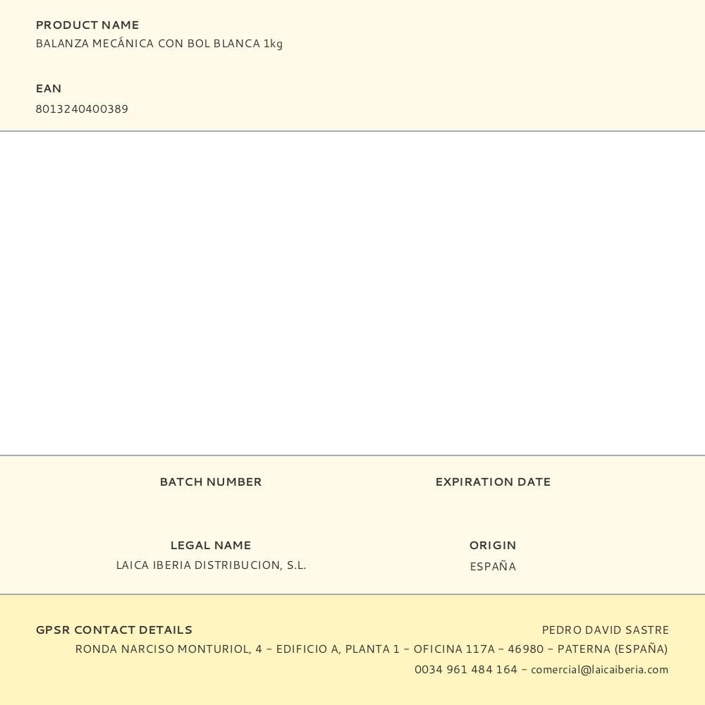 BALANZA MECÁNICA CON BOL BLANCA 1kg KS711 LAICA