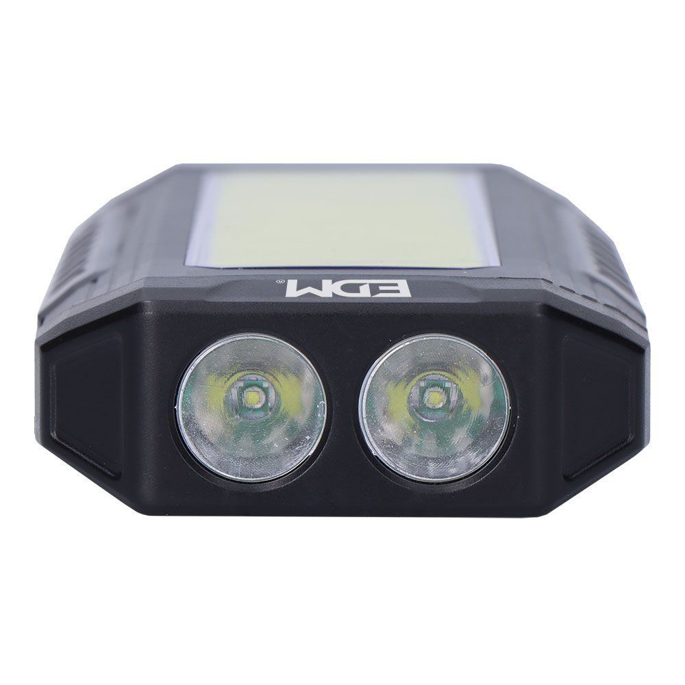LINTERNA LED DE ALUMINIO. SPOT LED: 5 W,9000 K, 3 MODOS: 90 lm/200 lm/FLASH. COB LED:10 W, 7500 K, 2 MODOS: 1000 lm/350 lm. LUZ ROJA/ FLASH ROJO( MANTENER PULSADO 3s). CABLE USB TIPO C INCLUIDO, FUNCIÓN POWER BANK, HASTA 9 h. DE AUTONOMIA, INDICADOR DE BATERÍA DE 4 LEDS, IMPERMEABLE IP44, CON IMÁN Y GANCHO, BATERÍA 2 x 2000 mAh DE LITIO INCLUIDA, CARGA DE 9 h. MEDIDAS: 70 x 26 x 166 mm . PRESENTADO EN EXPOSITOR DE 6 UNIDADES