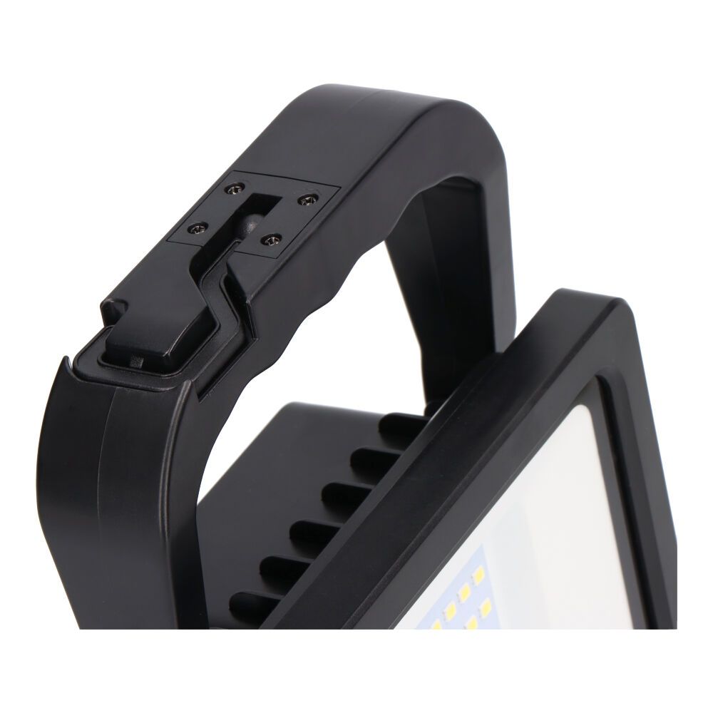 FOCO LED RECARGABLE 20 W 2000 lm 6500 K. FABRICADO CON SOPORTE DE ACERO. INCLUYE 2 BATERIAS 18650 3,7 V 2 x 2000 mAh. DOS POSICIONES DE LUZ: 100% 2.000 lm y 50% 1000 lm. TIEMPO DE ENCENDIDO: 2 h AL 100% Y 4 h AL 50%. TIEMPO DE CARGA 6h. CRI>80, IP54, INCLUYE GANCHO Y CABLE 1m USB-C