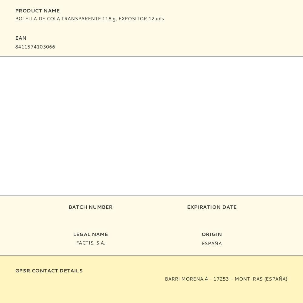 BOTELLA DE COLA TRANSPARENTE 118 g, EXPOSITOR 12 uds