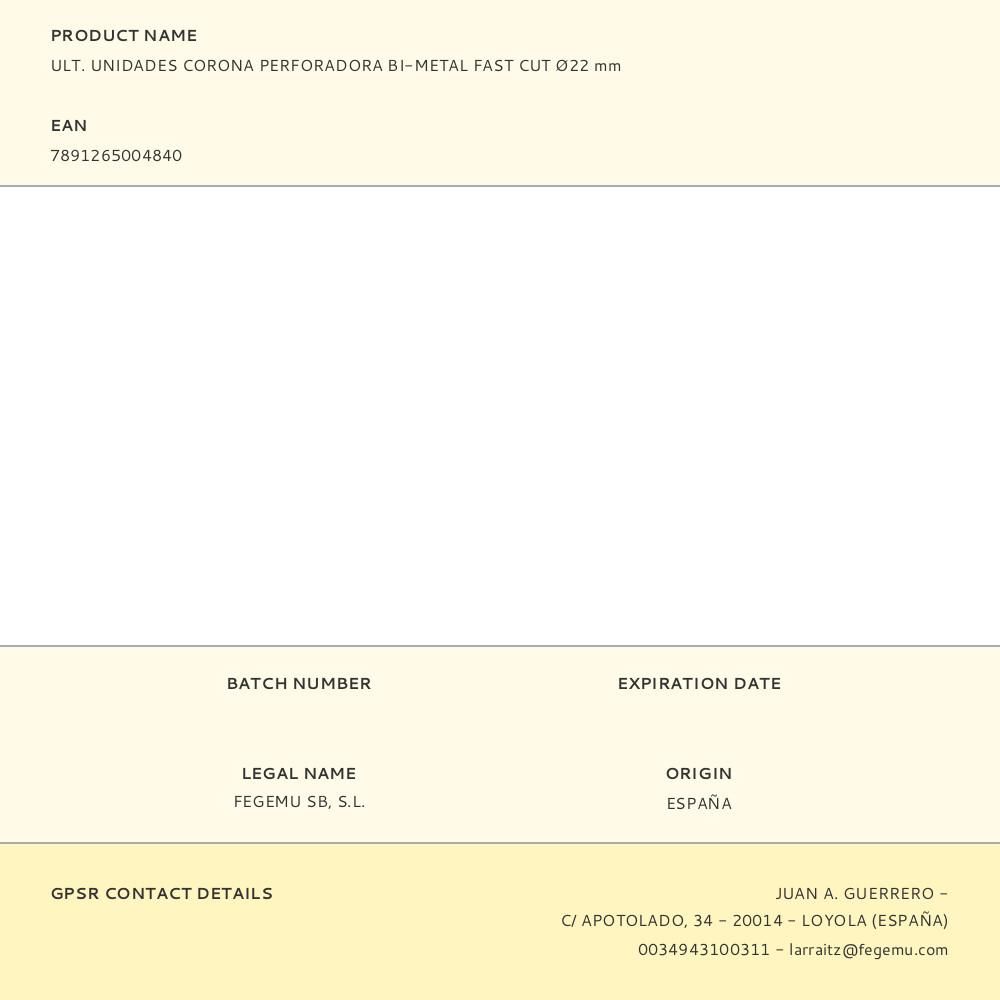 CORONA PERFORADORA BI-METAL FAST CUT Ø22 mm