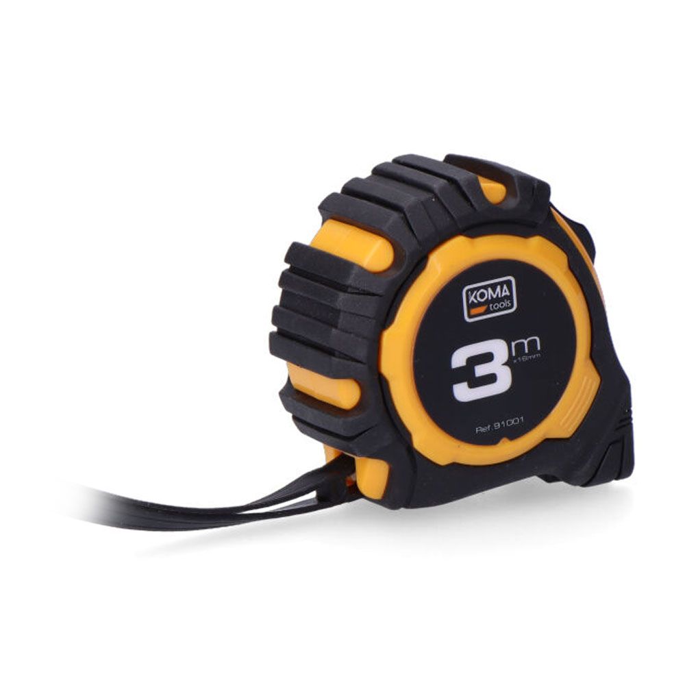 FLEXÓMETRO 3 m x 16 mm, CUERPO FABRICADO EN ABS ANTIDESLIZANTE. DOS POSICIONES DE BLOQUEO, CLIP PARA CINTURÓN. GROSOR DE LA CINTA 0,105 mm, CINTA NUMERACIÓN AMARILLA ACABADO MATE