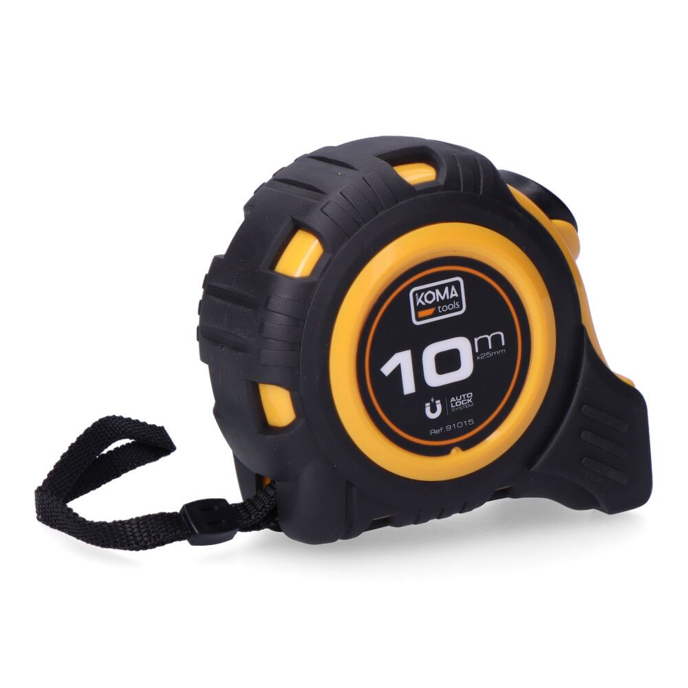 FLEXÓMETRO 10 m x 25 mm. CUERPO FABRICADO EN ABS ANTIDESLIZANTE. GANCHO MAGNÉTICO. UNA POSICIÓN DE BLOQUEO Y SISTEMA AUTO LOCK. CLIP PARA CINTURÓN. GROSOR DE LA CINTA 0,115mm, CINTA NUMERACIÓN AMARILLA ACABADO MATE