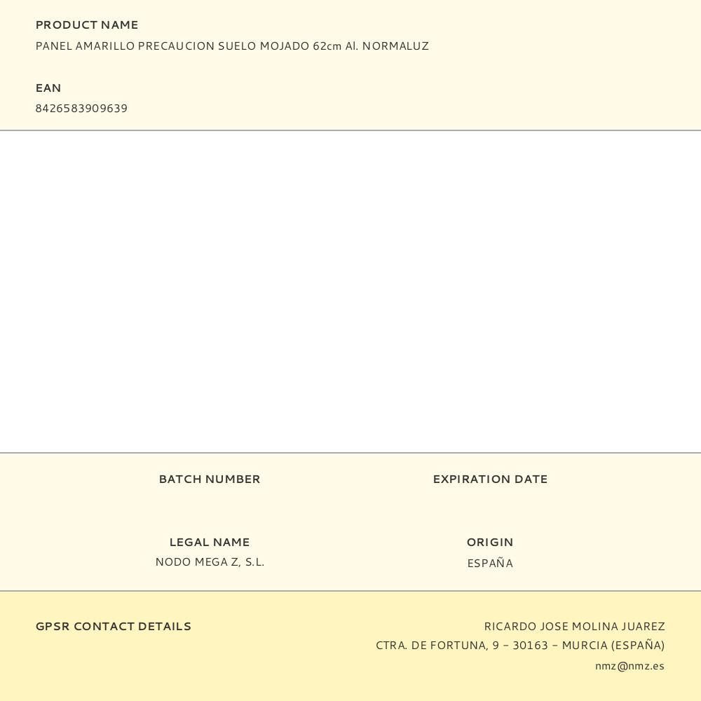 PANEL AMARILLO PRECAUCION SUELO MOJADO 62cm Al. NORMALUZ
