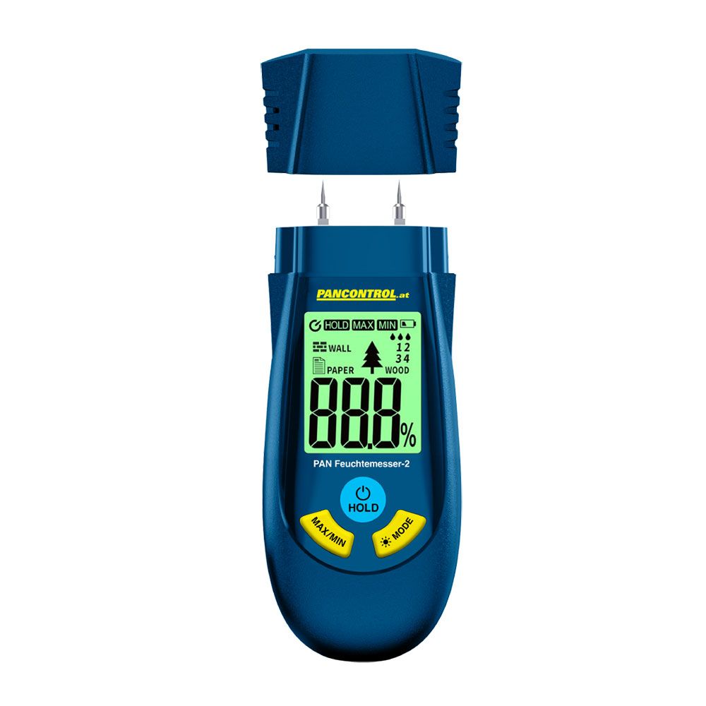 MEDIDOR DE HUMEDAD PARA MADERA, MATERIALES DE CONSTRUCCIÓN Y PAPEL - EL DISPOSITIVO MIDE EL VALOR DE HUMEDAD DIRECTAMENTE EN EL MATERIAL: MADERA DE 2,0-40 %, MATERIALES DE CONSTRUCCIÓN DE 1,5-30 % Y PAPEL DE 5,0-75 % - PANTALLA LCD GRANDE RETROILUMINADA - SE ENCIENDE AUTOMÁTICAMENTE EN CUANTO SE RETIRA LA TAPA PROTECTORA Y SE APAGA DESPUÉS DE 2 MINUTOS DE INACTIVIDAD - FUNCIONA CON PILAS 2 x AAA NO INCLUIDAS - DIMENSIONES 5 × 3,5 × 13 cm