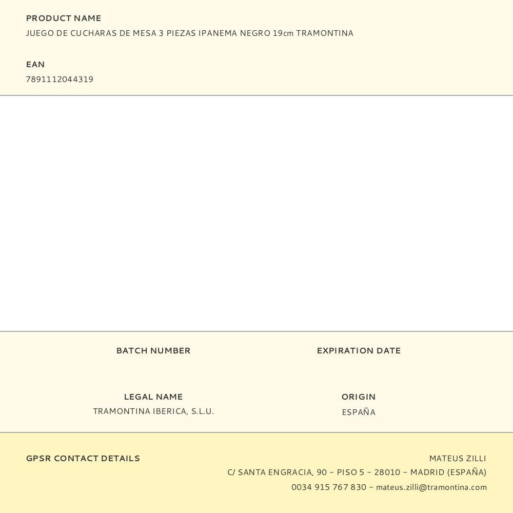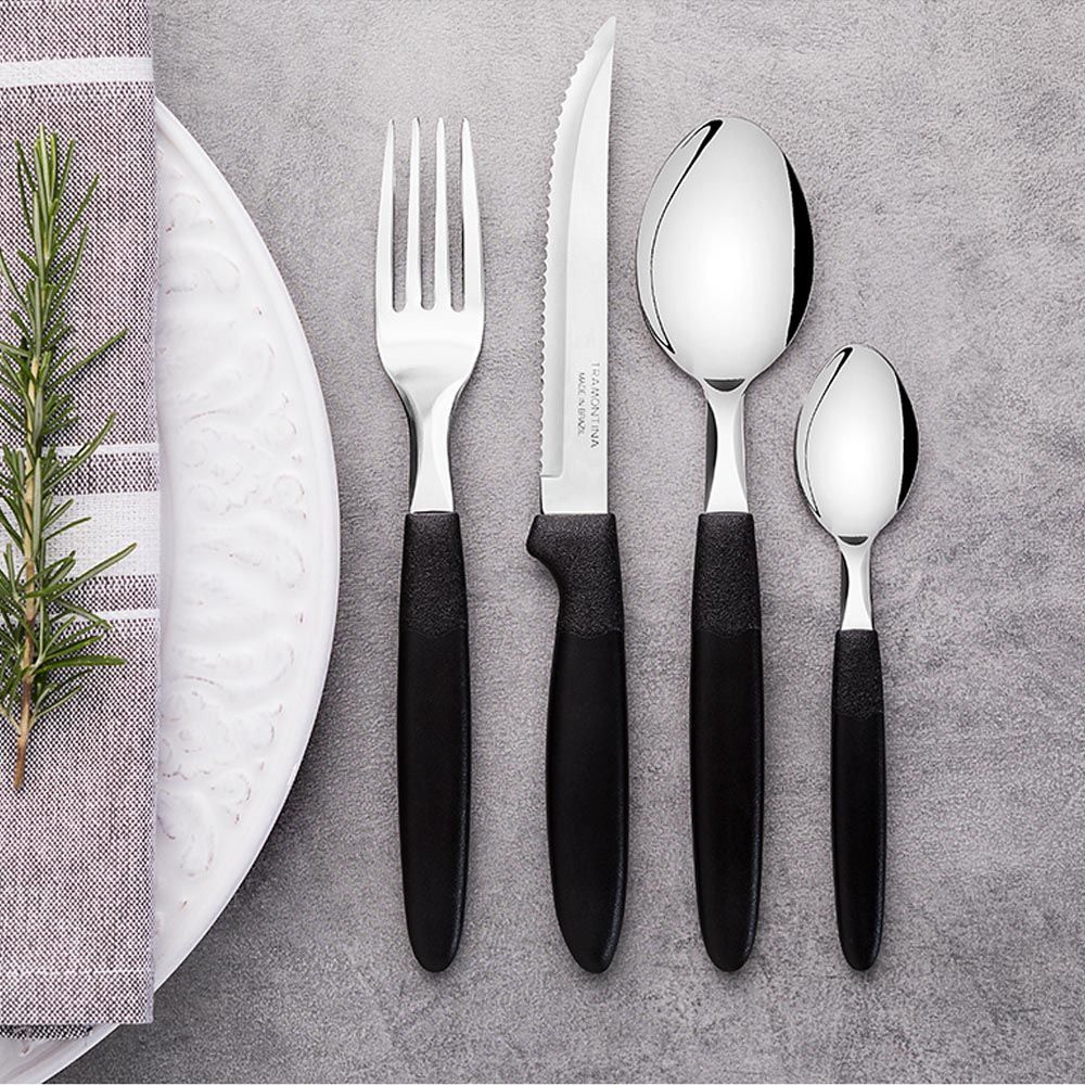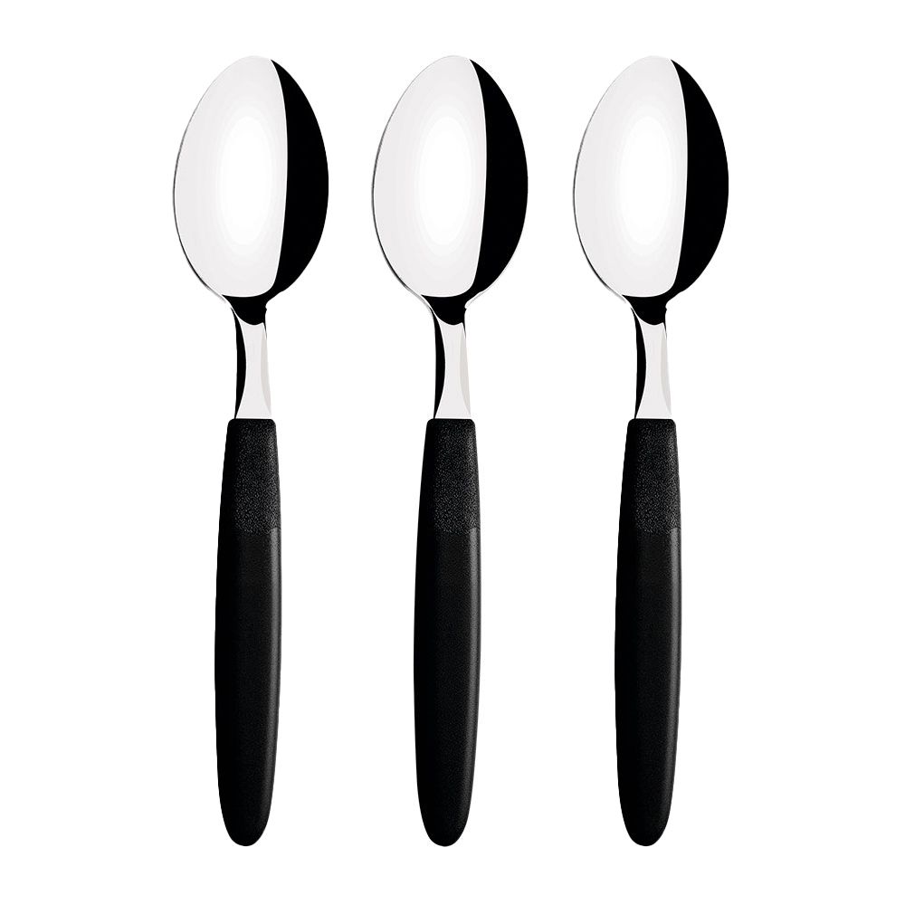 CUCHARA DE MESA IPANEMA NEGRO 19 cm, EN ACERO INOXIDABLE, MANGOS DE POLIPROPILENO, INCLUYE 3 PIEZAS, COLOR NEGRO