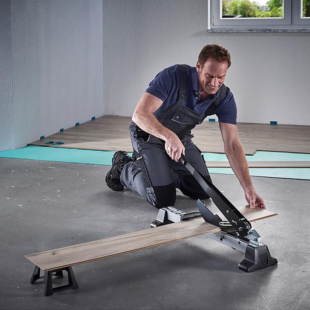 GUILLOTINA PARA CORTE DE VINILO Y LAMINADOS VLC 1000, PARA GROSORES DE TABLA DE HASTA 14mm PARA SUELOS DE LAMINADO, VINILO Y DISEÑO ESPECIALMENTE GRUESOS DE HASTA 14mm Y UNA ANCHURA DE 370mm, PARA USO PROFESIONAL TRANSMISIÓN POR ENGRANAJES QUE TRIPLICA LA FUERZA APLICADA Y MECANISMO PATENTADO DE RETORNO PARA UN CORTE SIN ESFUERZO OFRECE UN CONFORT MÁXIMO EN INNUMERABLES TRABAJOS DE INSTALACIÓN, ESPECIALMENTE PARA GRANDES GROSORES DE MATERIAL, SIN RUIDOS NI ELECTRICIDAD NI POLVO