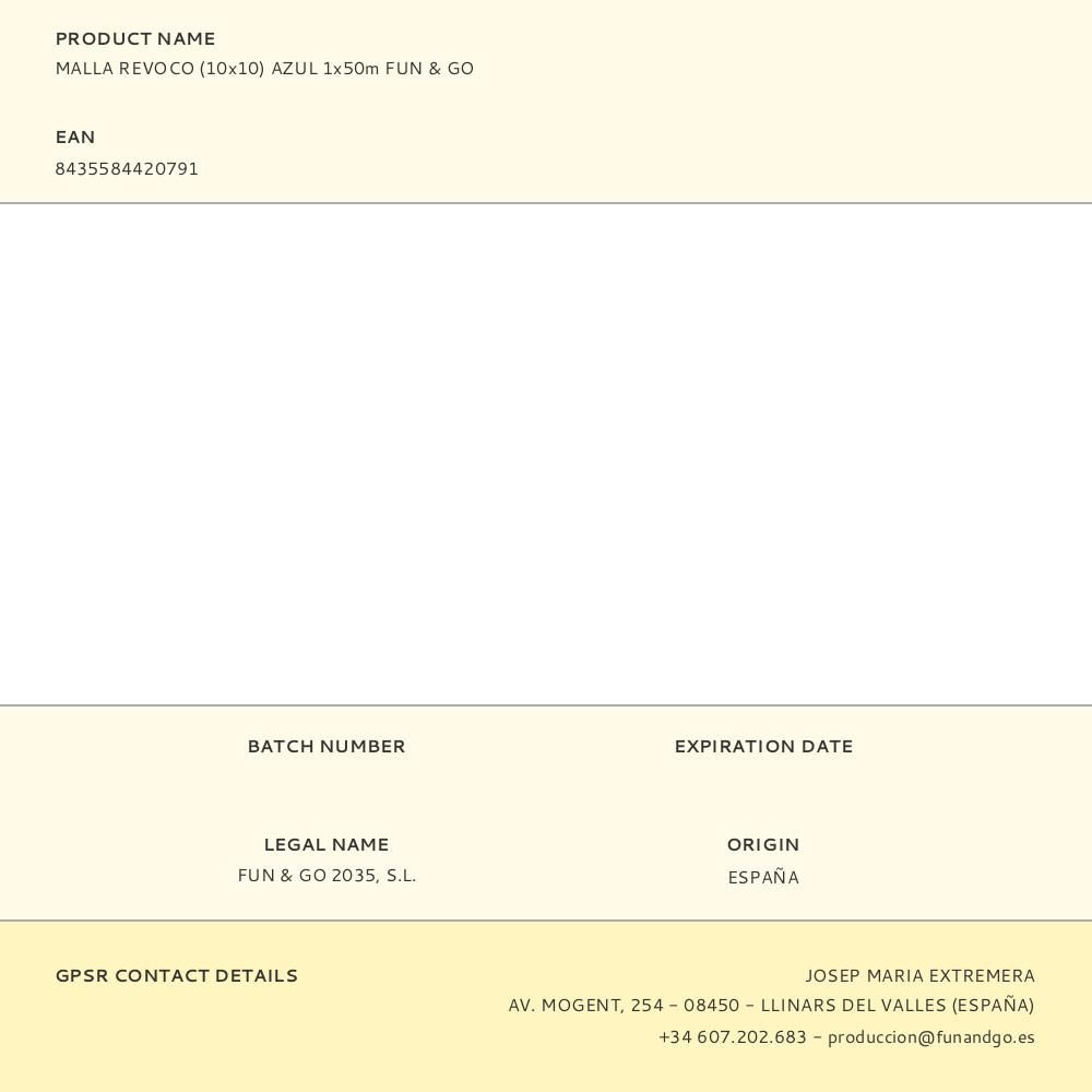 MALLA REVOCO (10 x 10) AZUL 1 x 50 m