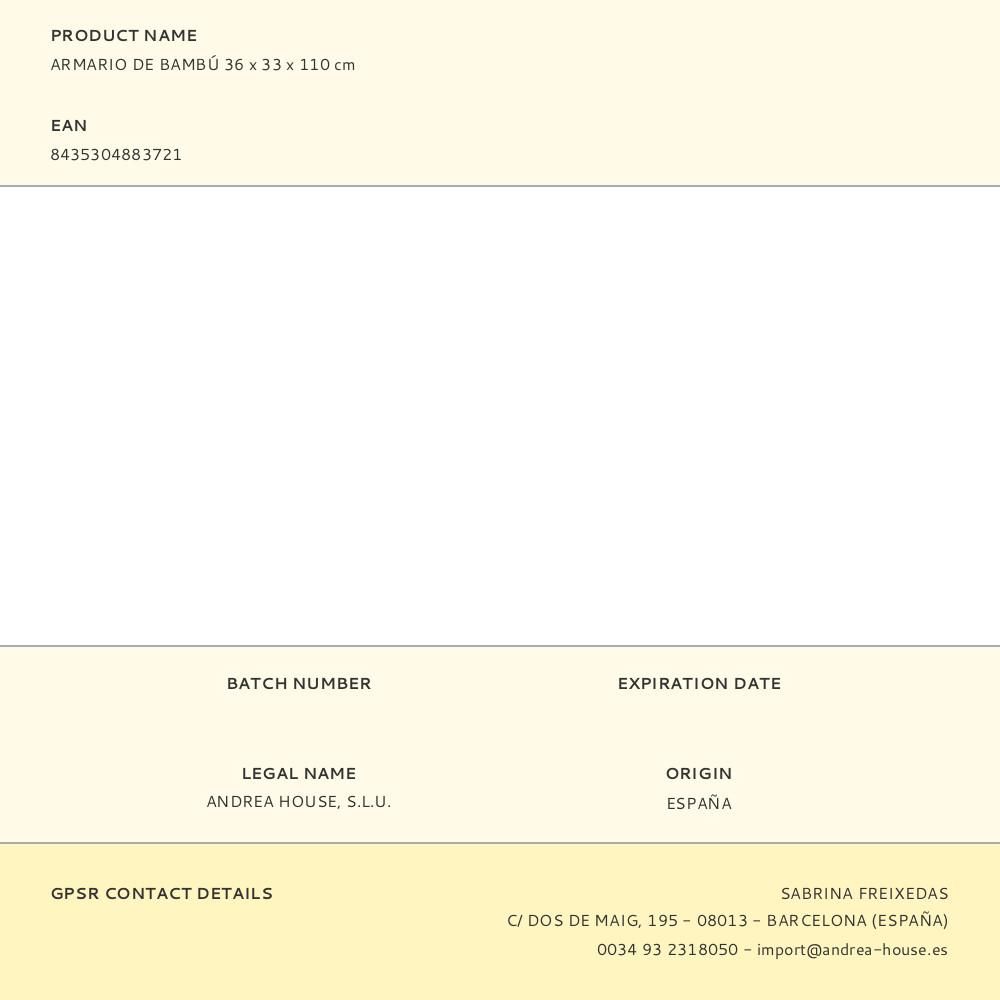 ARMARIO DE BAMBÚ 36x33x110cm (ancho/fondo/alto) BA73110 ANDREA HOUSE.