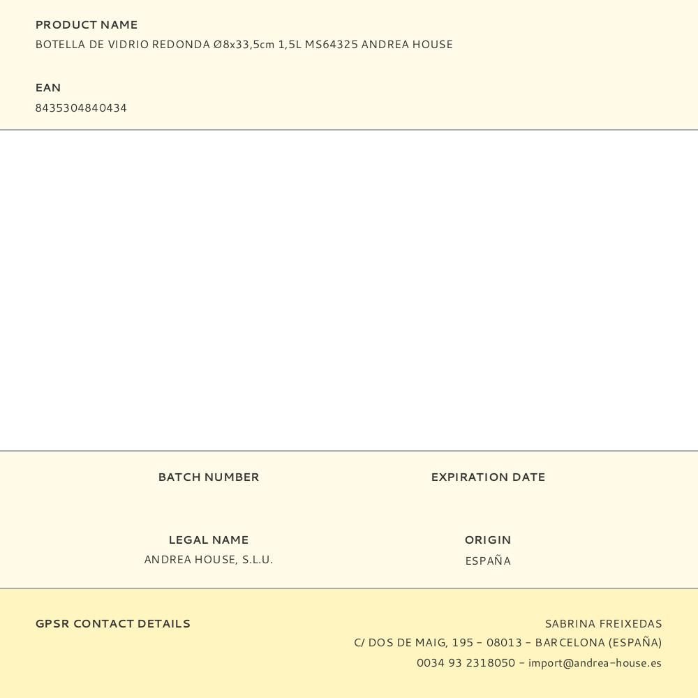BOTELLA DE VIDRIO REDONDA Ø8 x 33,5 cm 1,5 L