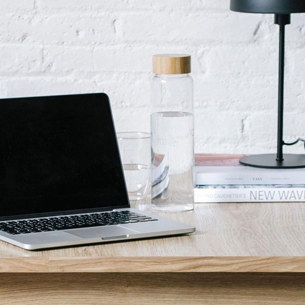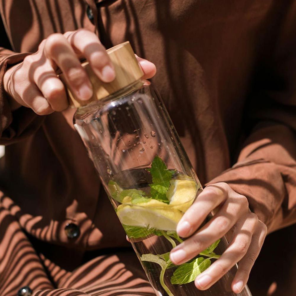 BOTELLA DE VIDRIO CON TAPA DE BAMBÚ Ø8 x 26,5 cm 1 L