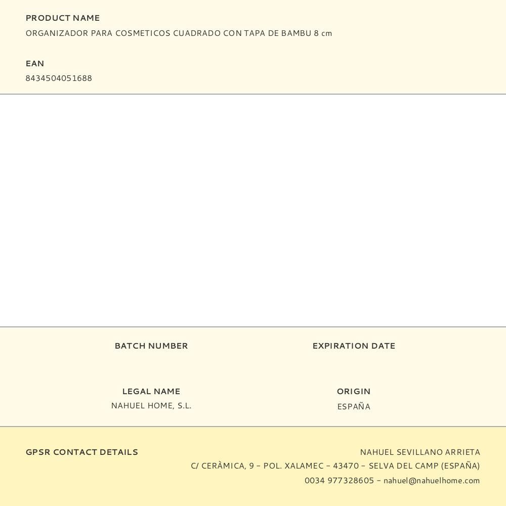 ORGANIZADOR PARA COSMETICOS CUADRADO CON TAPA DE BAMBU 8 cm
