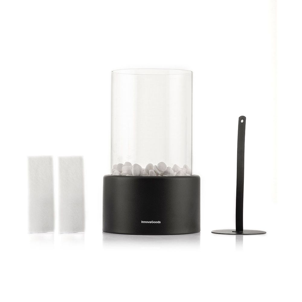 CHIMENEA DE MESA DE BIOETANOL DECORATIVA CON UN DISEÑO MODERNO Y ELEGANTE. BASE DE HIERRO RESISTENTE Y ESTABLE. SIN HUMO. MEDIDAS: Ø16 x 26,5 cm