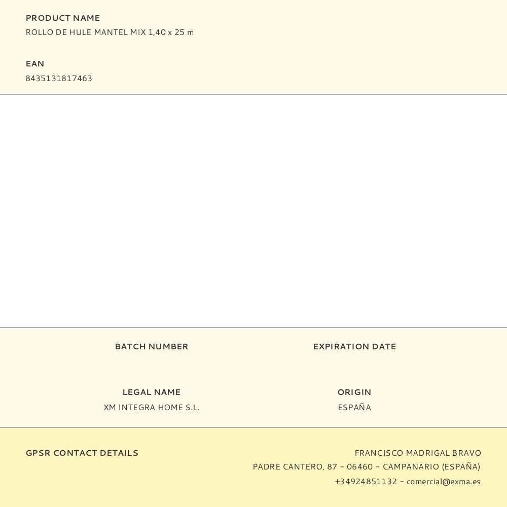 ROLLO DE HULE MANTEL ESTAMPADO MIX. MANTELERÍA DE HULE GAMA BÁSICA. COMPOSICIÓN DE LÁMINA PVC CON BASE DE TEJIDO SIN TEJER. NO LAVABLE, LIMPIEZA CON PAÑO HÚMEDO EN SUPERFICIE. MEDIDAS: 1,40 x 25 m