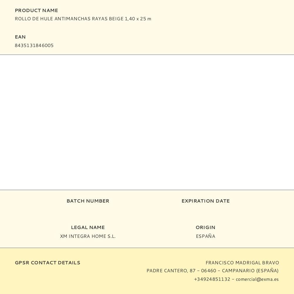 ROLLO DE HULE ANTIMANCHAS RAYAS BEIGE. MANTELERÍA DE TEJIDO ANTIMANCHAS GAMA BÁSICA. COMPOSICIÓN 70% POLIÉSTER, 30% ALGODÓN. NO LAVABLE, LIMPIEZA CON PAÑO HÚMEDO EN SUPERFICIE. MEDIDAS: 1,40 x 25 m
