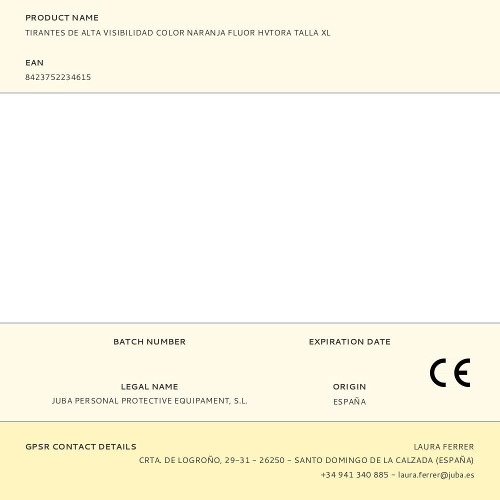 TIRANTES DE ALTA VISIBILIDAD COLOR NARANJA FLUOR HVTORA TALLA XL