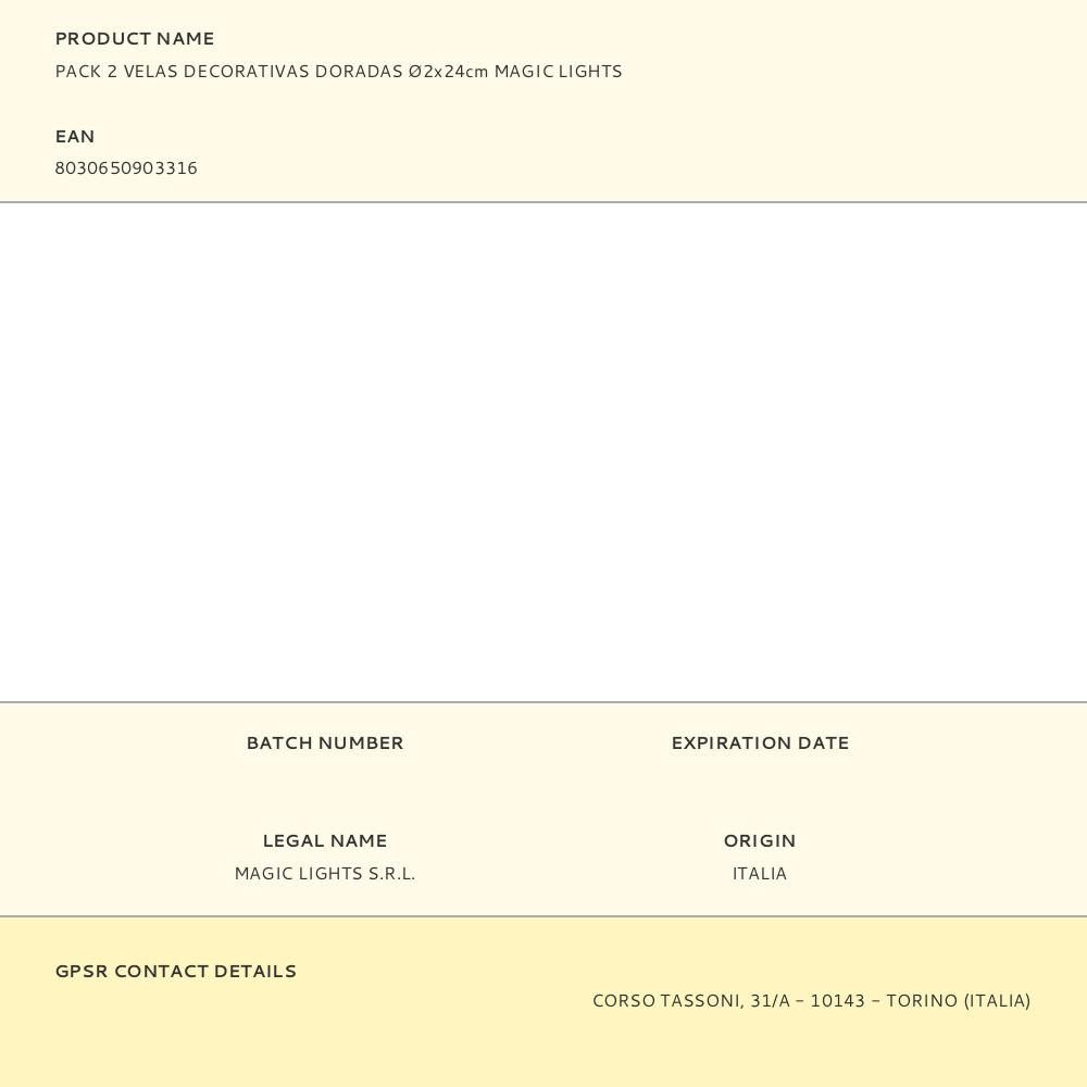 PACK 2 VELAS DECORATIVAS DORADAS Ø2x24cm MAGIC LIGHTS