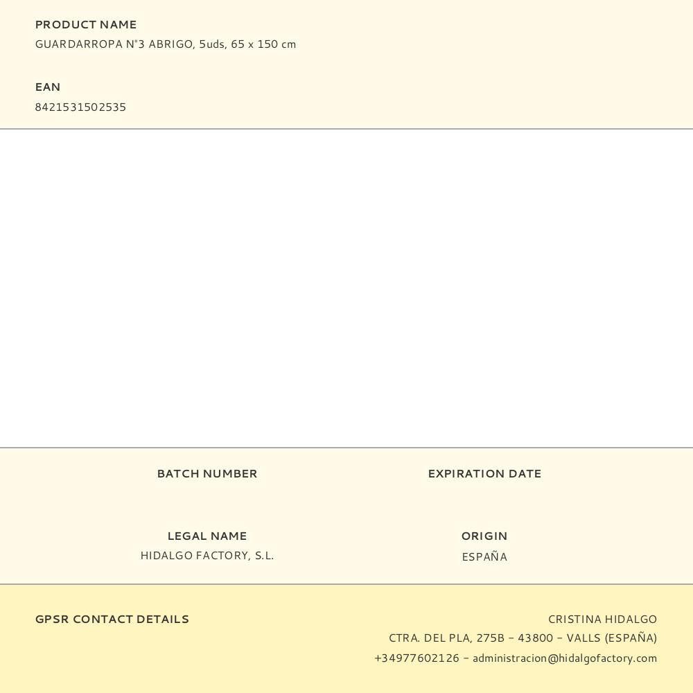 GUARDARROPA N°3 ABRIGO, 5uds, 65 x 150 cm