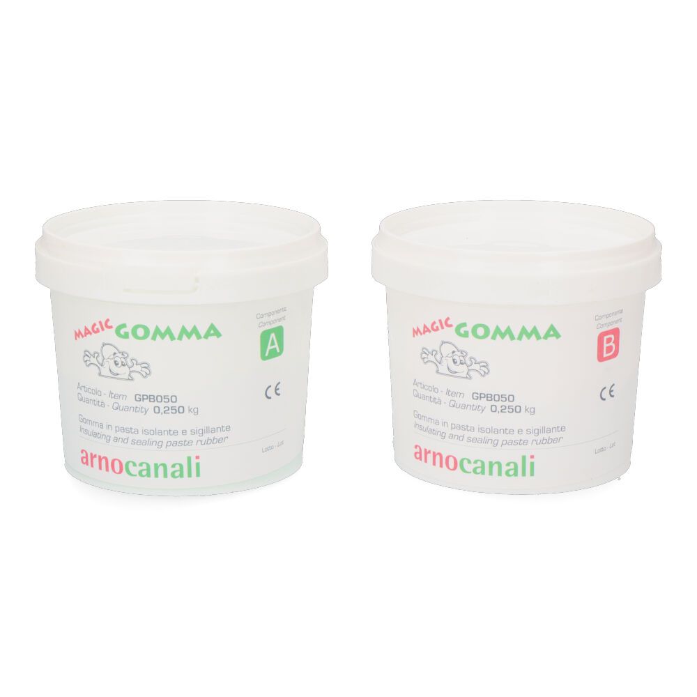 MAGIC GOMMA BICOMPONENTE EN PASTA 2x250g. PARA EL REVESTIMIENTO DE PRODUCTOS YA INSTALADOS. NO TÓXICO,REACCESIBLE Y MOLDEABLE.IGNÍFUGO NO PROPAGA LLAMAS.FLEXIBLE Y ELÁSTICO EN EL TIEMPO. ELEVADAS CARACTERÍSTICAS DIELÉCTRICAS. RÁPIDO EN LA RETICULACIÓN.