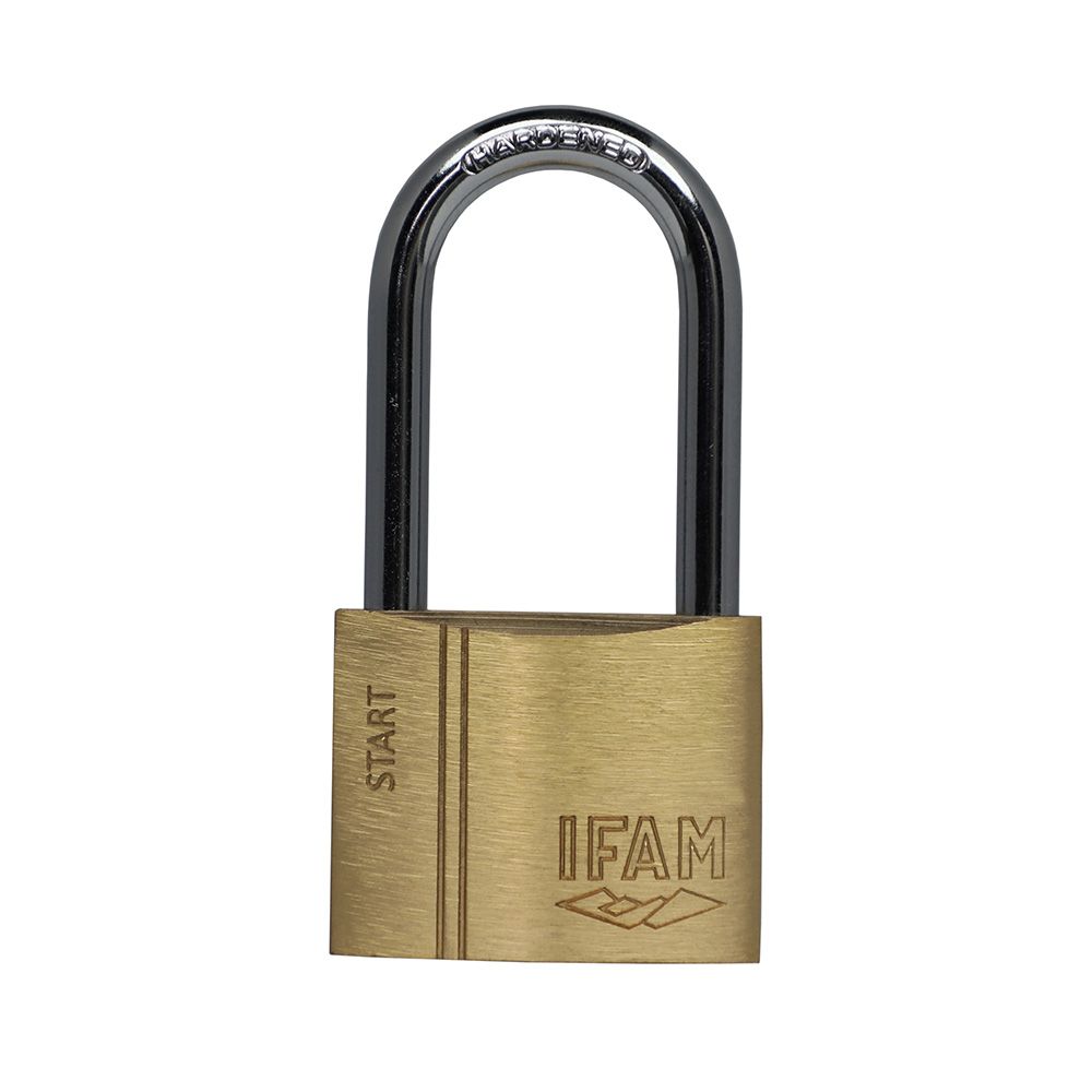 CANDADO DE ARGO LARGO 40mm SR40AL 074010SR IFAM CANDADO START ARCO LARGO DE ACERO TEMPLADO Y CROMADO DE GRAN RESISTENCIA. LLAVE DE SERRETA, LLAVES DIFERENTES. CUERPO DE LATÓN EXTRUIDO. SISTEMA DE DOBLE ENGANCHE. SE SUMINISTRA CON DOS LLAVES DE LATÓN NIQUELADAS. SE SUMINISTRA EN CAJA CON EURO-COLGADOR. PESO (kg): 0,133. DIMENSIONES (cm): 1,31x3,988x3,192cm