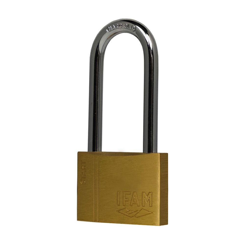 CANDADO DE ARGO LARGO 50mm SR50AL 075010SR IFAM CANDADO START ARCO LARGO DE ACERO TEMPLADO Y CROMADO DE GRAN RESISTENCIA. LLAVE DE SERRETA, LLAVES DIFERENTES. CUERPO DE LATÓN EXTRUIDO. SISTEMA DE DOBLE ENGANCHE. SE SUMINISTRA CON DOS LLAVES DE LATÓN NIQUELADAS. SE SUMINISTRA EN CAJA CON EURO-COLGADOR. PESO (kg): 0,204. DIMENSIONES (cm): 1,379x4,78x3,5cm