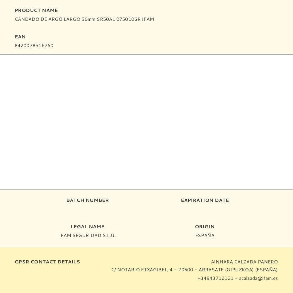 CANDADO DE ARGO LARGO 50mm SR50AL 075010SR IFAM