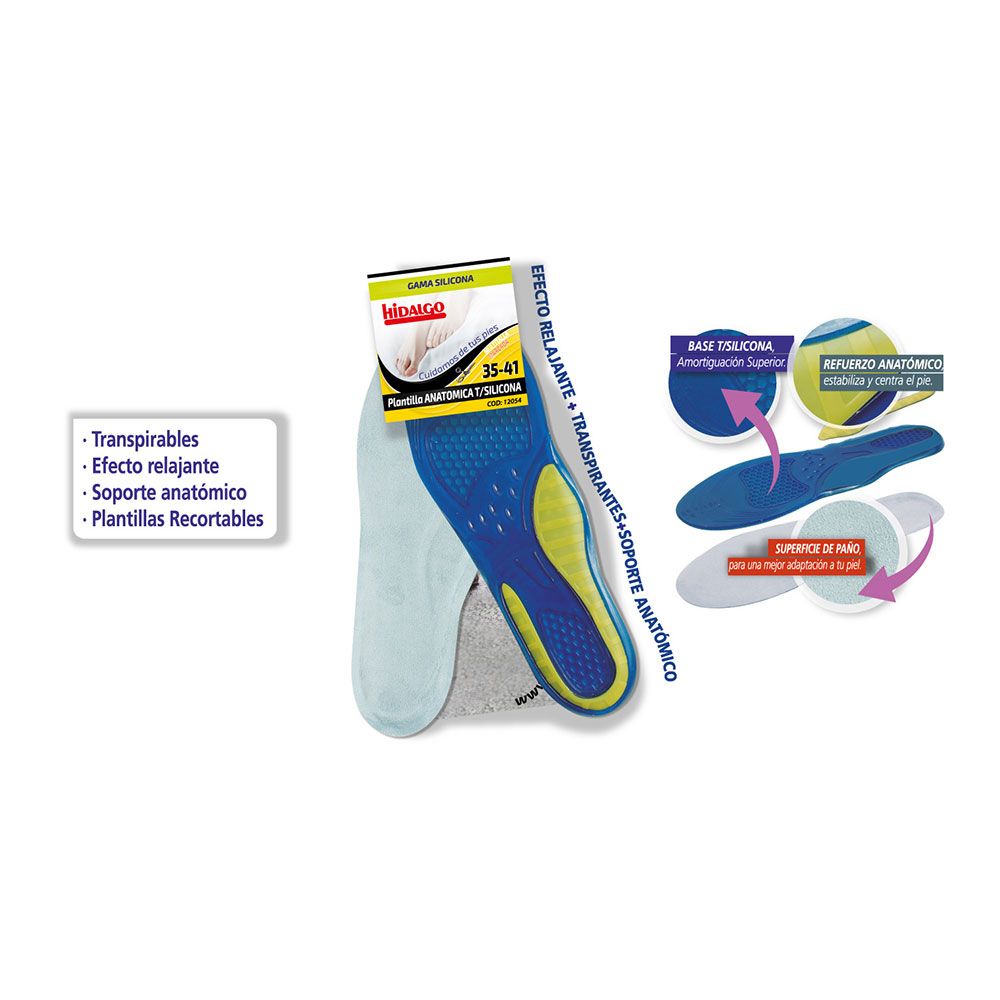 PLANTILLA PARA CALZADO ANATÓMICA SILICONA T: 35-41.REFUERZO ANATÓMICO QUE ESTABILIZA Y CENTRA EL PIE. TRANSPIRABLES. EFECTO RELAJANTE. MULTITALLA RECORTABLE, 35-41