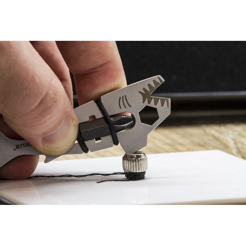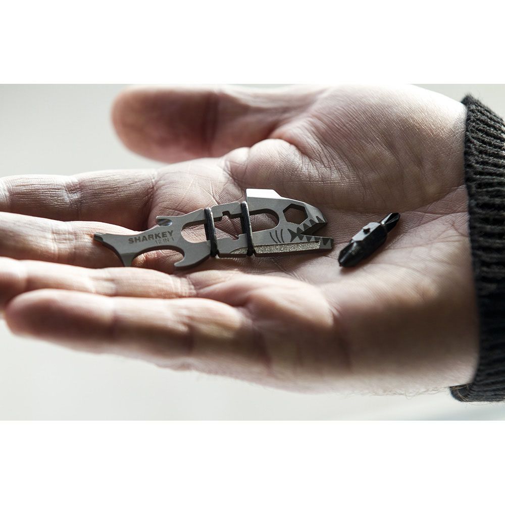 MULTIHERRAMIENTA SHARKEY 12 EN 1 ES TIENE UN TAMAÑO DE UNA LLAVE QUE VIENE CON UNA MORDIDA. CONTIENE 6 DESTORNILLADORES - PLANOS PEQUEÑOS, MEDIANOS Y GRANDE. TAMBIÉN ES UNA BARRA DE PALANCA Y ABREBOTELLAS Y ABRELATAS, CORTAHILOS Y LIMA FUNCIONA TAMBIÉN COMO UN CORTADOR DE CAJAS
