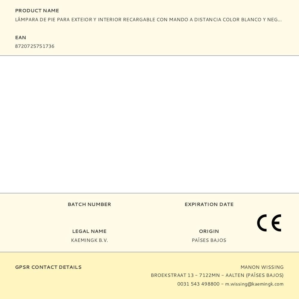 LÁMPARA DE PIE PARA EXTERIOR Y INTERIOR RECARGABLE CON MANDO A DISTANCIA COLOR BLANCO Y NEGRO 150 cm