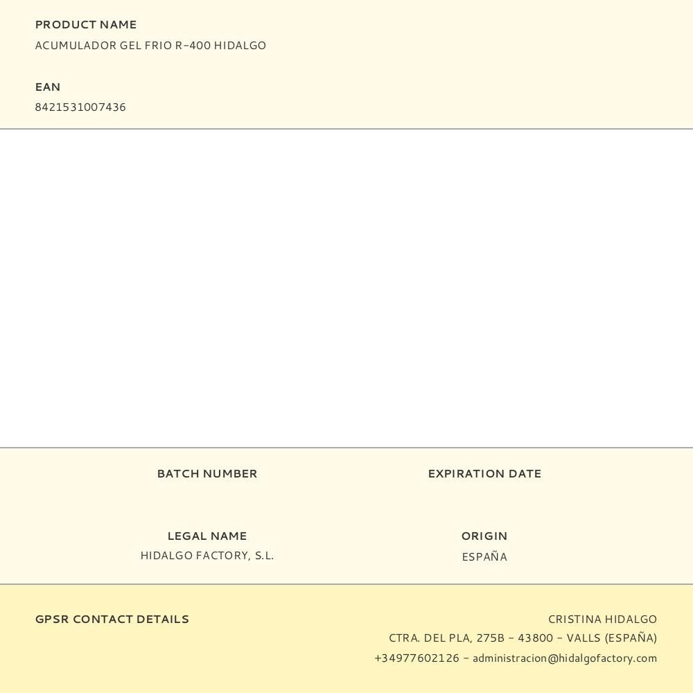 ACUMULADOR GEL FRIO R-400 HIDALGO