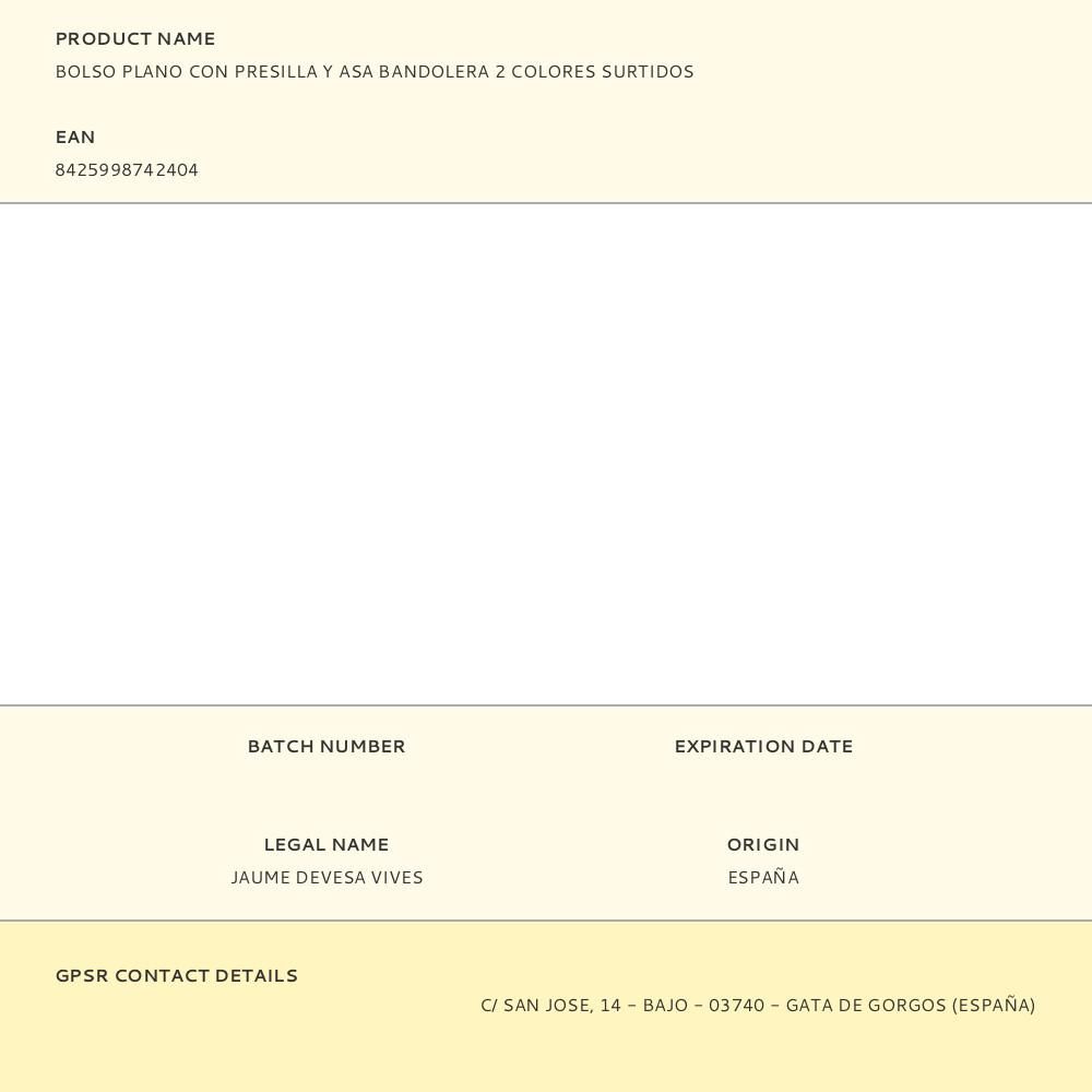 BOLSO PLANO CON PRESILLA Y ASA BANDOLERA 2 COLORES SURTIDOS