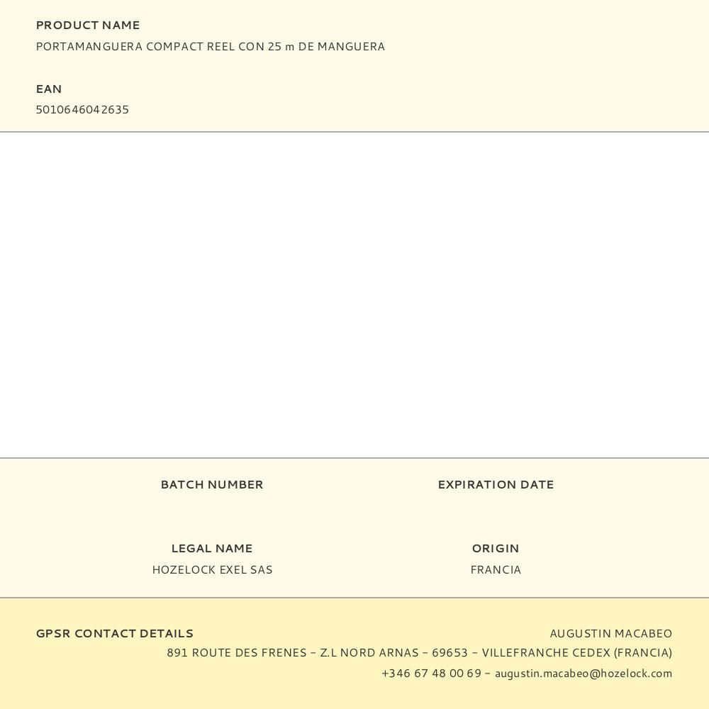 ENROLLADOR DE MANGUERA MANUAL COMPACT REEL 25 m