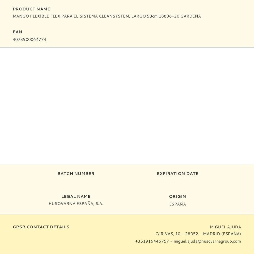 MANGO FLEX DE LIMPIEZA CON ARTICULACIÓN FLEXÍBLE PARA EL SISTEMA CLEANSYSTEM.CON CODO ARTICULADO DE REGULACIÓN FINA DE 45° DE CADA LADO. PARA LA LIMPIEZA DE LUGARES OCULTOS Y DE ACCESO DIFÍCIL. MEDIDAS: 53 cm